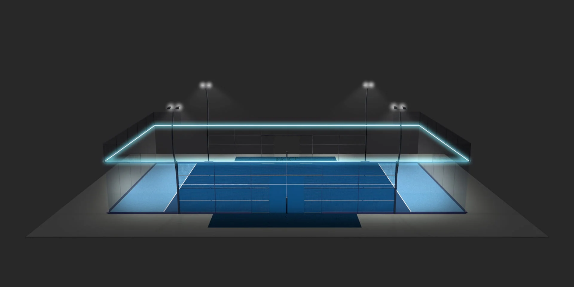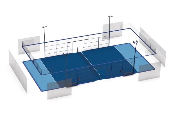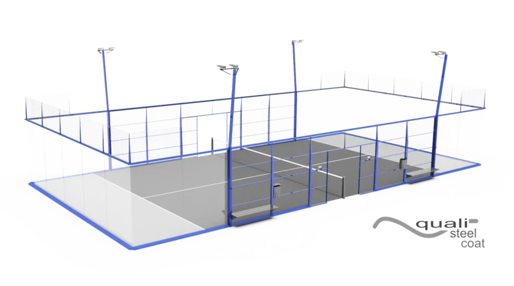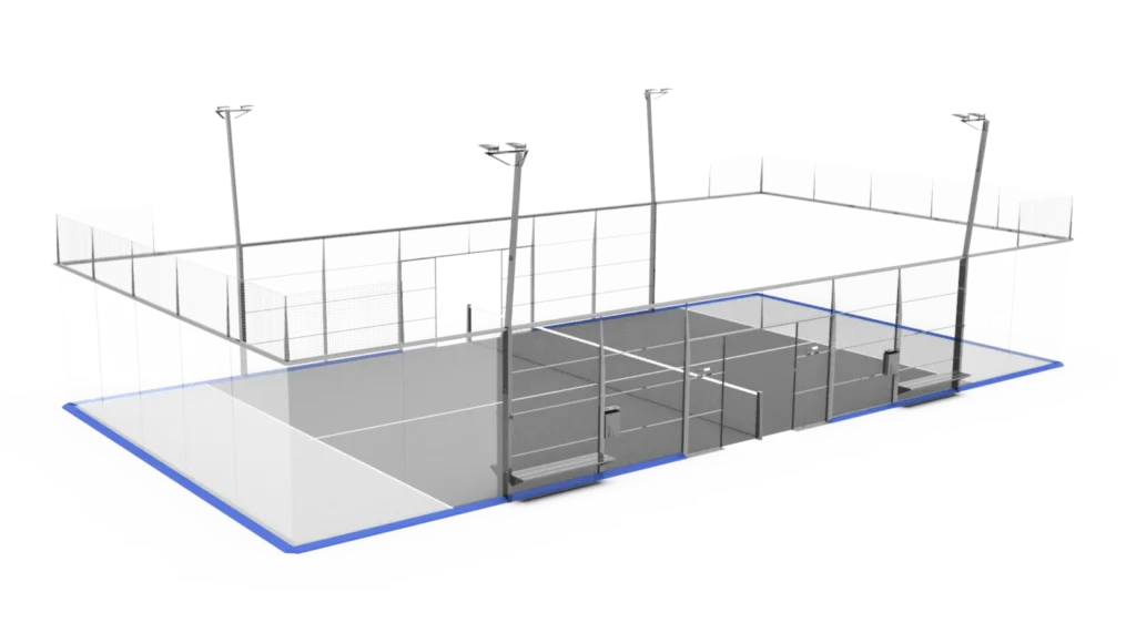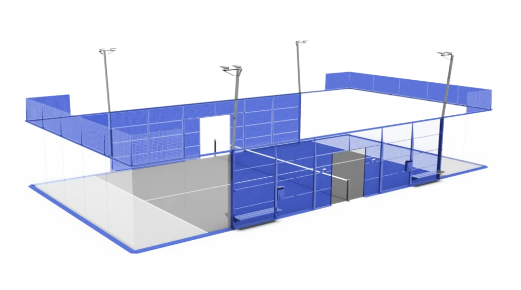 Der patentierte INFINITY-Platz entspricht den Vorschriften der International Padel Federation und den strengsten Anforderungen der Eurocodes und reduziert so die Herstellungs-, Transport- und Montagekosten sowie den CO2-Fußabdruck.