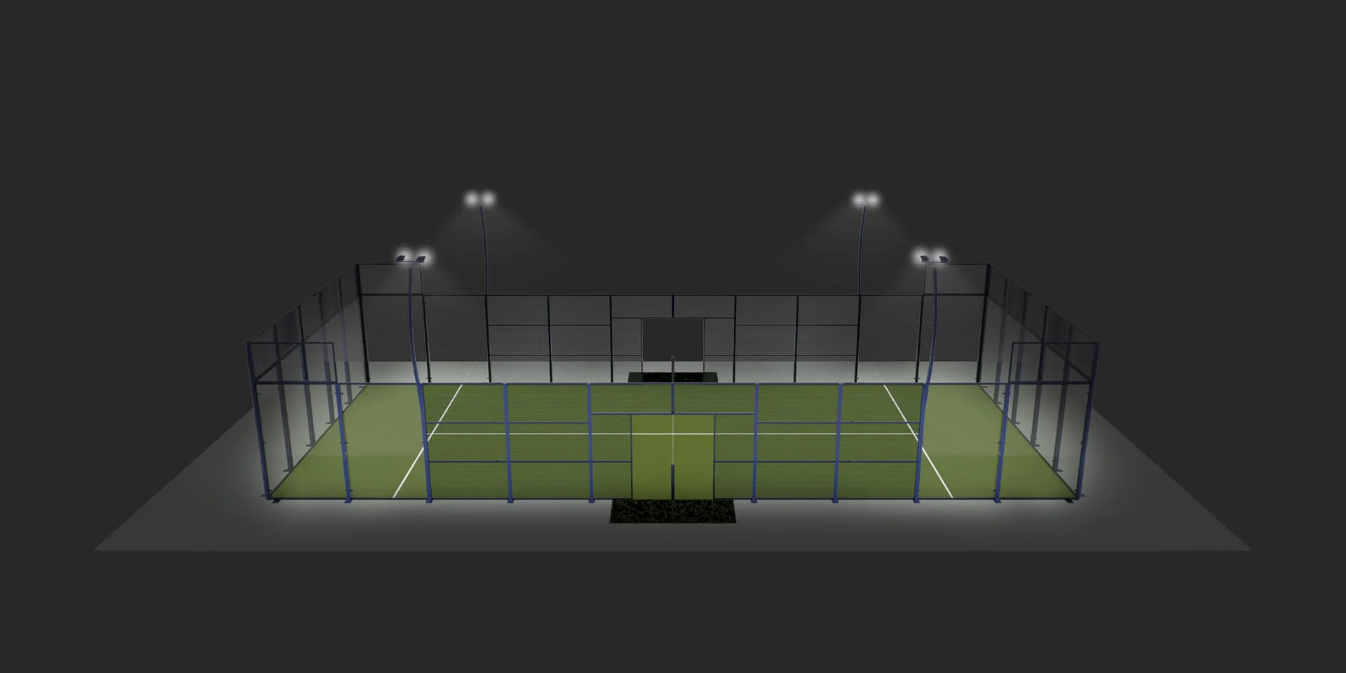 Gemäß den Standards der International Padel Federation für gehärtetes Glas, 12 mm dick mit polierter, flacher Kante, mit perfekter Planimetrie und vollständig zugelassen gemäß den WPT-, Premier Padel- und APT-Designs: 18 Gläser von 2995 x 1995 mm, mit versenkten Löchern (108 m²).